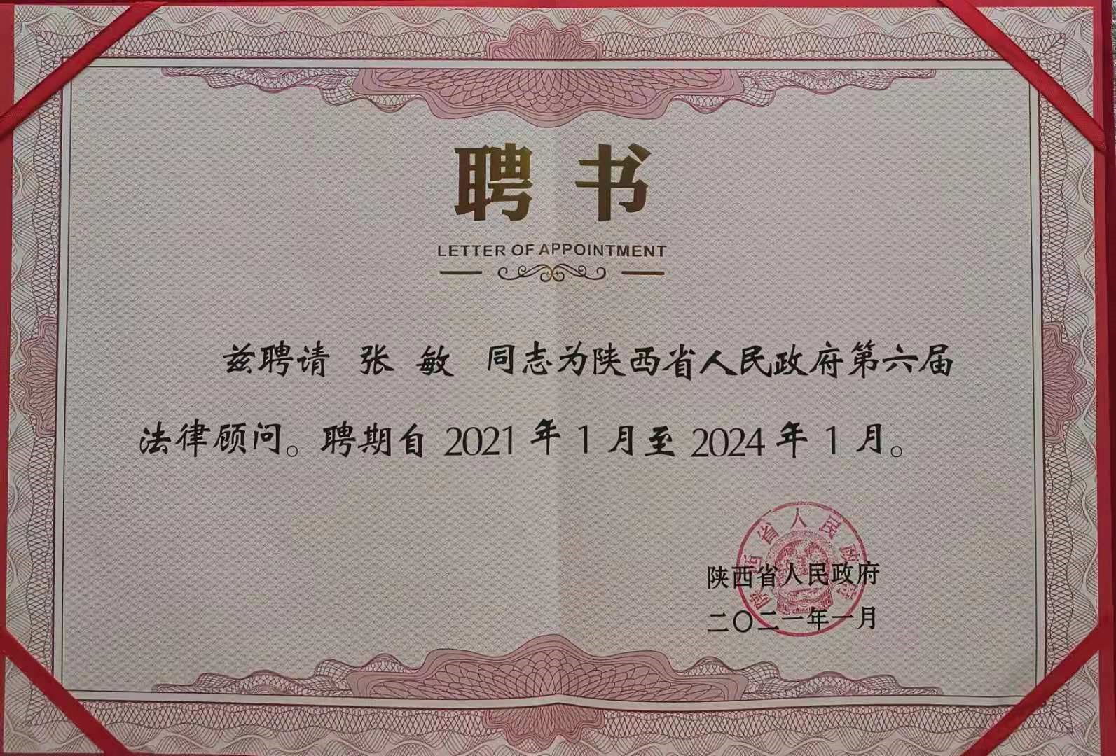 张敏教授曾受聘担任第五届省政府法律顾问组成员,本次是上一任期届满后再次获聘。