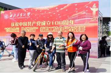 4月18日,太阳成集团tyc122ccvip部门工会组织多名教职工,参加校工会组织2021年庆祝中国共产党成立100周年“喜迎全运 快乐骑行”教职工自行车郊游活动。