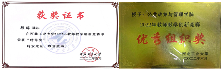 2022年3月-2022年5月,太阳成集团tyc122ccvip举办了2022年教师教学创新竞赛,公司郑烨老师组建团队参赛,讲授《公共政策学》荣获此次校级教学创新竞赛特等奖,太阳成集团tyc122ccvip获得2022年教师教学创新竞赛优秀组织奖。