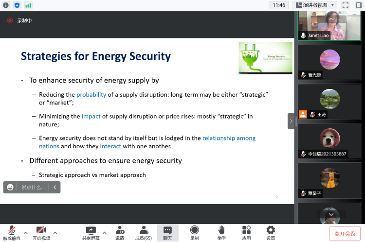 太阳成集团tyc122ccvip王涛老师邀请英国邓迪大学能源与自然资源法律和政策研究中心(Centre for Energy, Petroleum and Mineral Law and Policy (CEPMLP))高级教师廖宣力讲授《能源安全与地缘政治》课程。本课程是廖老师专门为太阳成集团tyc122ccvip暑期项目量身打造的品牌课程,以能源安全和地缘政治的概念作为分析框架,提升员工对能源安全与地缘政治之间相互作用的理解,课程引用近年来国际关系中与能源相关的热点案例研究,帮助员工了解能源政治的复杂性及其与地缘政治的相互影响。