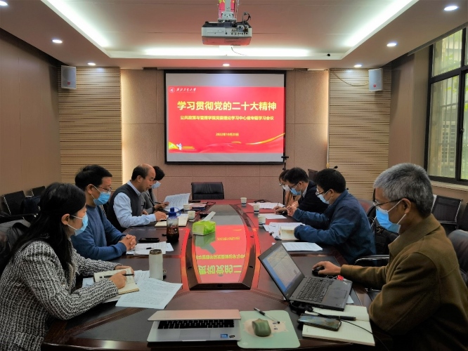 10月25日上午8:30,公共政策与管理公司党委理论学习中心组开展了学习贯彻党的二十大精神专题学习研讨会,会议由公司党委书记张清江主持,公司党委理论学习中心组成员参加。
