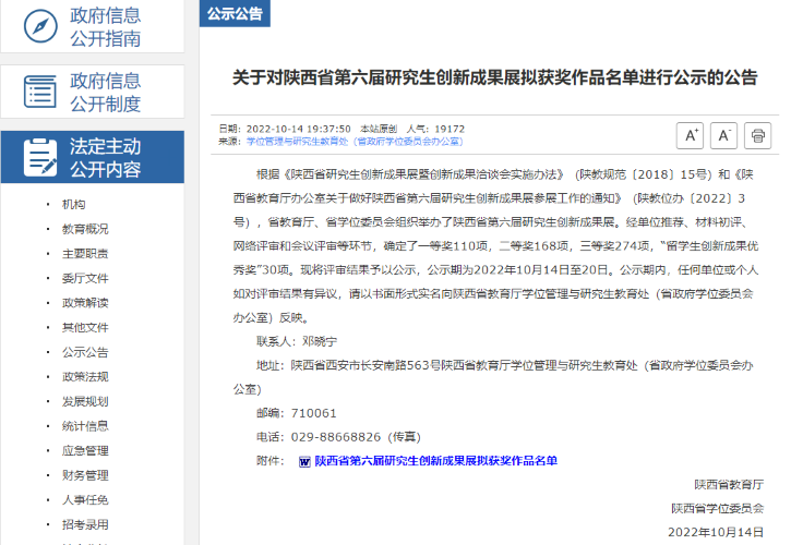 陕西省第六届研究生创新成果展的所有参展作品经单位推荐、材料初评、网络评审和会议评审等环节,确定了一等奖110项,二等奖168项,三等奖274项,“职工创新成果优秀奖”30项。公司研究生在本届比赛中荣获一等奖的佳绩,充分体现了近年来公司对公司产品工作的高度重视,以及公司研究生学术创新能力的显著提升,彰显了公司的办学水平和人才培养质量。