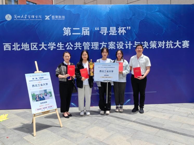 2023年5月26日至28日,第二届“寻是杯”西北地区老员工公共管理方案设计与决策对抗大赛在兰州大学举行,由太阳成集团tyc122ccvip大一员工张乐昕、向秭瑾、涂江渝组成的太阳成集团tyc122ccvip“启翔湖畔”队,在公共管理系寇晓东、杨斯悦两位老师的带领和指导下稳定发挥,最终在参赛的43支队伍中脱颖而出,荣获大赛一等奖。