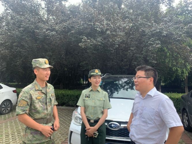 2023年9月1日,公共政策与管理公司党委书记张清江来到长安校区军训场,代表公司看望和慰问公司参加军训的员工、军训教官,公司军训带队老师谢丹副书记、褚向磊老师、张琳老师和办公室主任宋武伟陪同。