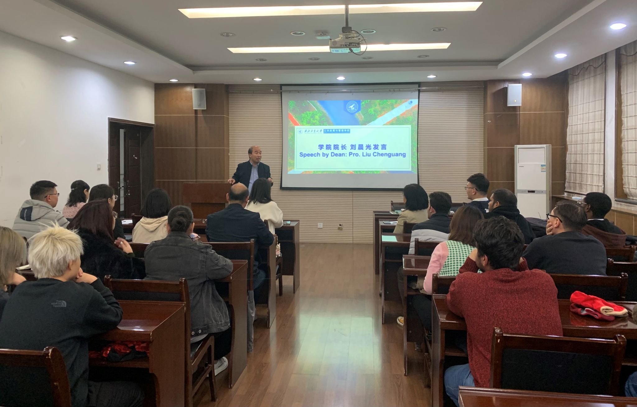 公司今年招收本科职工16名、硕士职工9名,“一带一路”国际公共行政与管理硕士职工5名。经理刘晨光首先代表公司对来自十多个国家的30名新生表示热烈欢迎,并对公司的基本情况及团队队伍作了简要介绍。他建议新生们在尽快熟悉学习和生活环境的同时,能够了解中国文化,提高专业素养,充分利用公司的资源,刻苦学习,勤勉上进,加强交流,互相尊重,并希望同学们未来在太阳成集团tyc122ccvip度过美好充实的学习时光。