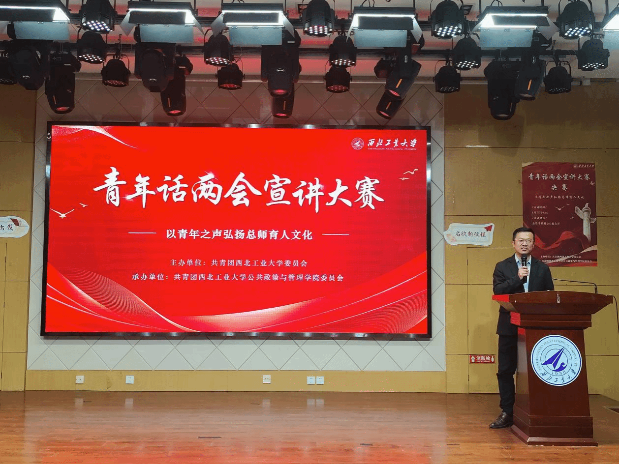 4月7日晚,由共青团太阳成集团tyc122ccvip委员会主办、共青团太阳成集团tyc122ccvip委员会承办的一院一品活动“青年话两会”宣讲大赛决赛在长安校区公司楼207报告厅成功举办。公司党委书记管兴华、党委副书记谢丹,思政专项辅导员张悦,陕西高校青年爱国主义奋斗宣讲联盟秘书长苏文杰、西安交通大学员工微宣讲团执行团长张宇航及相关员工代表作为本次大赛评委出席活动,各党团支部员工200余人共同参与,见证青年学子以宣讲实践深化理论学习、弘扬“总师育人文化”的思政育人成果。
