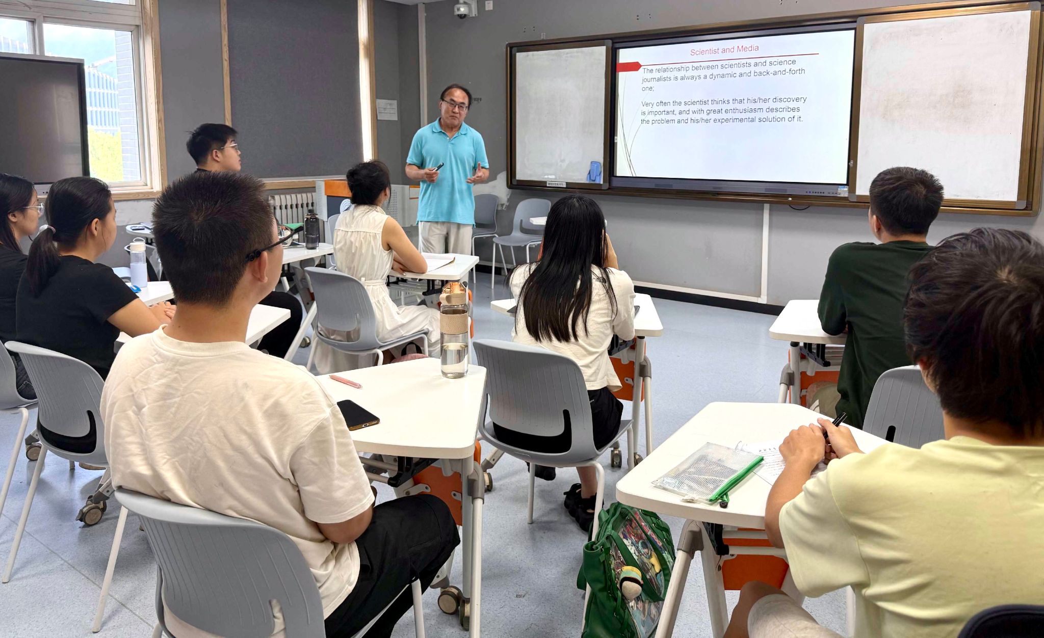 张婧文副教授邀请美国密苏里大学教授Zhigang Sun讲授《科学素养基础/The Fundamentals of Science Literacy》课程。课堂旨在帮助员工理解科学素养的重要性、科学传播的流程及挑战、辨析科学信息真伪的做法和科学探究过程中需要的理论、方法等。Zhigang Sun引用近期社会热点事件和相关学术论文,结合新闻传播学知识,从各个角度全面讲授科学素养、科学传播方面的知识,并鼓励员工思考、讨论,启发员工运用批判性思维、发散性思维处理和解决问题,锻炼他们不迷信权威、勇于质疑、勇于创新、严谨求真的科学素质,以此加深员工对科学素养的理解,提升员工的科学素养水平。