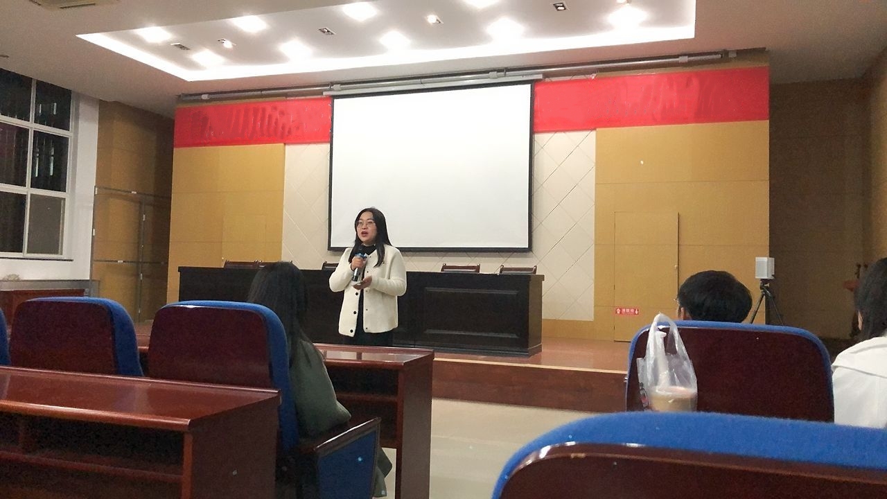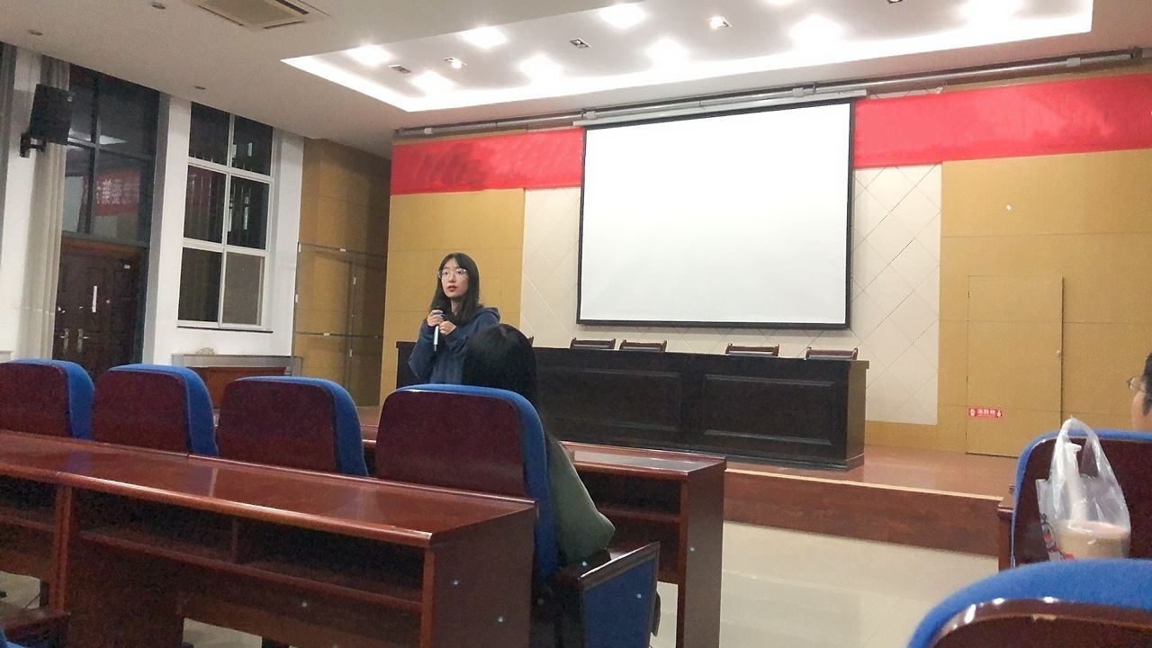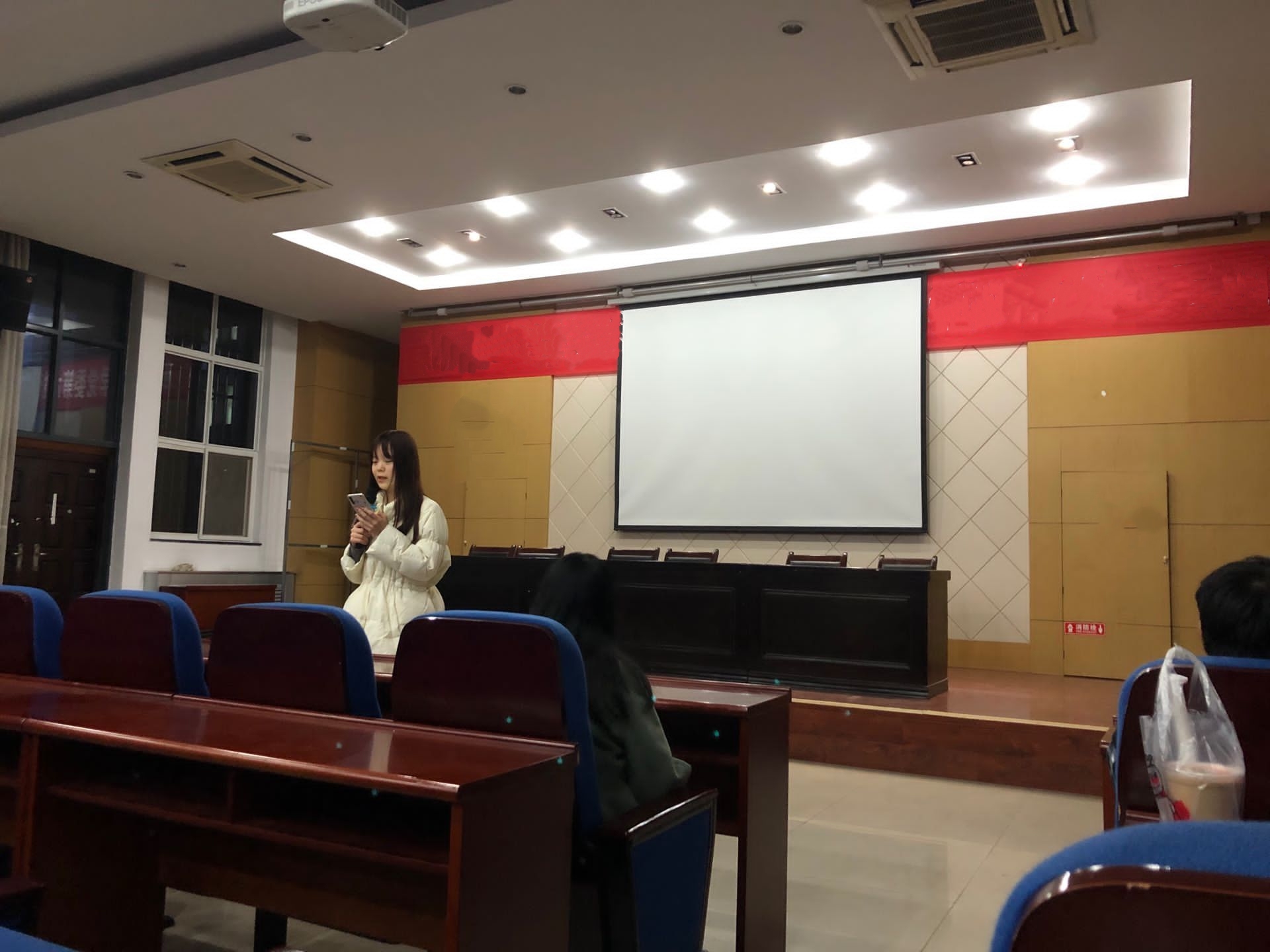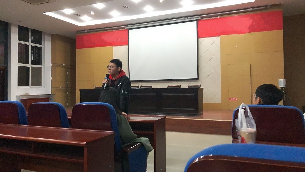 国贸专业的温昌浩同学,他向大家介绍了自己担任研究生支教团团长的故事,建议同学们响应国家脱贫攻坚计划的号召,参与支教志愿活动,为更多贫困地区更优质的教育贡献青年力量。