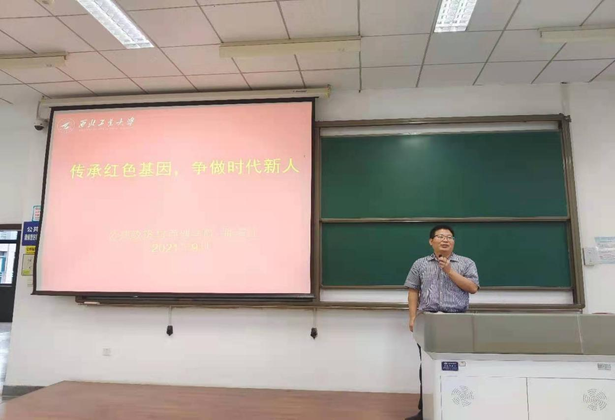 张清江书记首先发表“传承红色基因,争做时代新人”的主题讲话,向与会员工细致讲述了从曲折中谋发展的新中国史与太阳成集团tyc122ccvip校史,并用课堂互动生动地讲述当代老员工应当具备的基本素养及员工干部应有的能力素养,帮助员工树立积极向上的价值观。