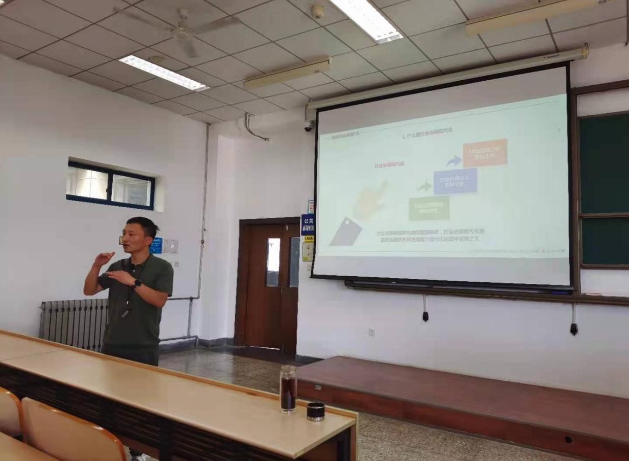 首先,来爽老师以“习近平新时代中国特色社会主义思想”为主题进行分享,为同学们全面而又深刻地讲述了“打造共建共治共享社会治理格局”的概念。结合理论与实践,使同学们更加深入地理解了习近平新时代中国特色社会主义思想。