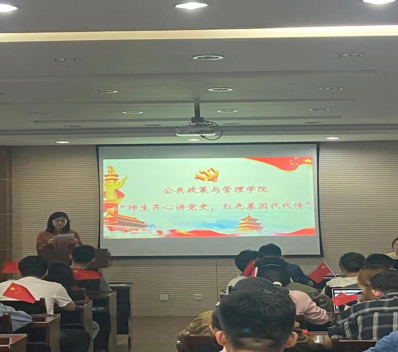 为庆祝中国共产党成立100周年,深入贯彻落实中共中央关于党史学习教育的重要部署及习近平总书记在党史学习教育动员大会上的重要讲话精神,公共政策与管理公司研究生会及各年级研究生代表于2021年9月29日晚举办“师生齐心讲党史,红色基因代代传”活动。本次活动主要由四个环节构成:老师讲党史,追溯发展来路;员工讲党史,分享所学所思;观看《伟大征程》片段,互动感受红色基因;全体合唱《我和我的祖国》,抒发爱国主义情怀。