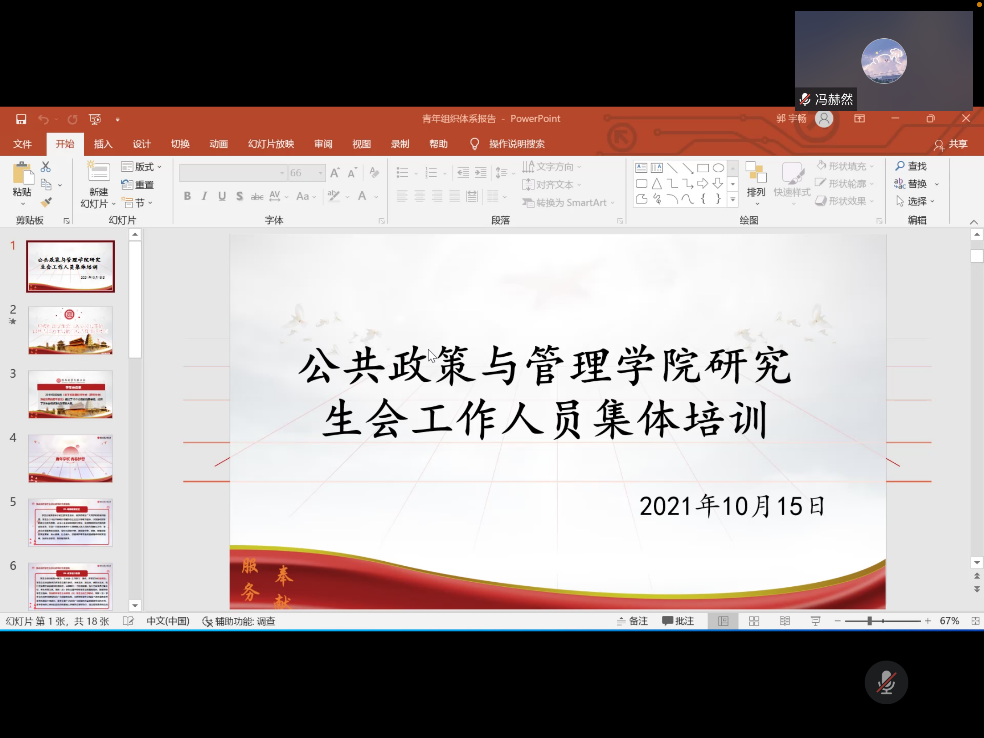 为深入贯彻习近平新时代中国特色社会主义思想特别是习近平总书记关于青年工作的重要思想,太阳成集团tyc122ccvip研究生会于10月16日晚召开集体学习会议。会议由研会主席团成员郭宇畅同学主持,研会全体成员参与。