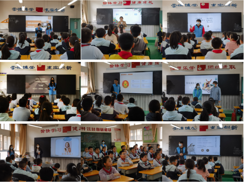 志愿者们分组前往四年级、五年级和六年级的课堂中,开展启迪分享课程。在四年级课堂中,胡恩、李鹏飞为员工们带来了“快乐成长小方法”,让员工们懂得分享快乐、换位思考、理解包容等与人愉快相处的重要方法;尚扬、刘依宁从自身的成长经历谈起,为孩子们讲授了缓解心理压力、自我疏导调节的方法。