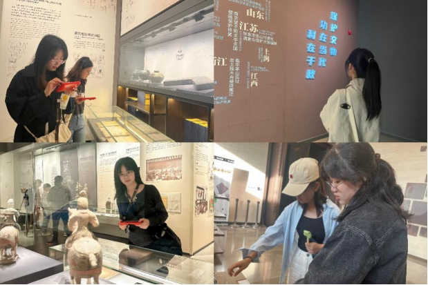 通过语音导览,同学们分组参观了以“考古圣地华章陕西”为主题的“考古历程”“文化谱系”“考古发现”“文保科技”四个展厅。从仰韶文化中神秘又喜感的镂空人面盆形器到李倕公主墓出土的精美绝伦的螺钿花鸟纹铜镜;从首例考古发掘的颜真卿书丹的《罗婉顺墓志》到杯口厚度仅1毫米的隋师统墓中出土的透影白瓷杯,大家不由惊叹古代能工巧匠的精湛技艺。2023级本科生李奕玮说:“这次主题实践活动让我们在参观文化遗产保护成果的过程中,深入了解了中国考古和陕西考古的发展脉络。未来,我们也将以此为起点,主动学习和传承中华优秀传统文化,赓续和弘扬新时代丝路精神。”