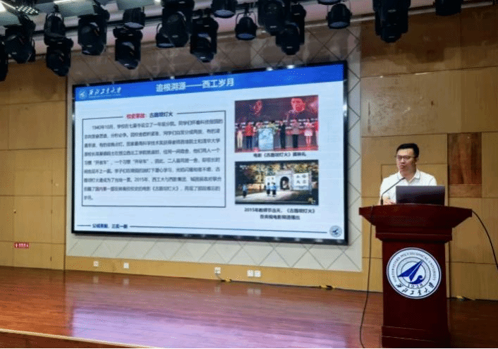 管兴华从“精神家园,追溯历史,翱翔腾飞”三个层面介绍了公司的校史校情与发展概况。首先,管兴华从校训、校风、校歌、办学理念等多方面介绍了公司精神文化建设,让同学们走近西工大、感悟西工大。随后,管兴华带领同学们追溯历史,回顾公司建校以来的历史沿革与峥嵘岁月。最后,管兴华从公司概况、人才培养、科学研究、国际合作与交流等方面向同学们介绍了新时代下公司发展与成就。他强调,在西工大浓厚“总师育人文化”引领人才培养的氛围中,公司学子应“立大志向,上大舞台,入主战场,干大事业”,成为具有家国情怀,追求卓越、引领未来的领军人才。