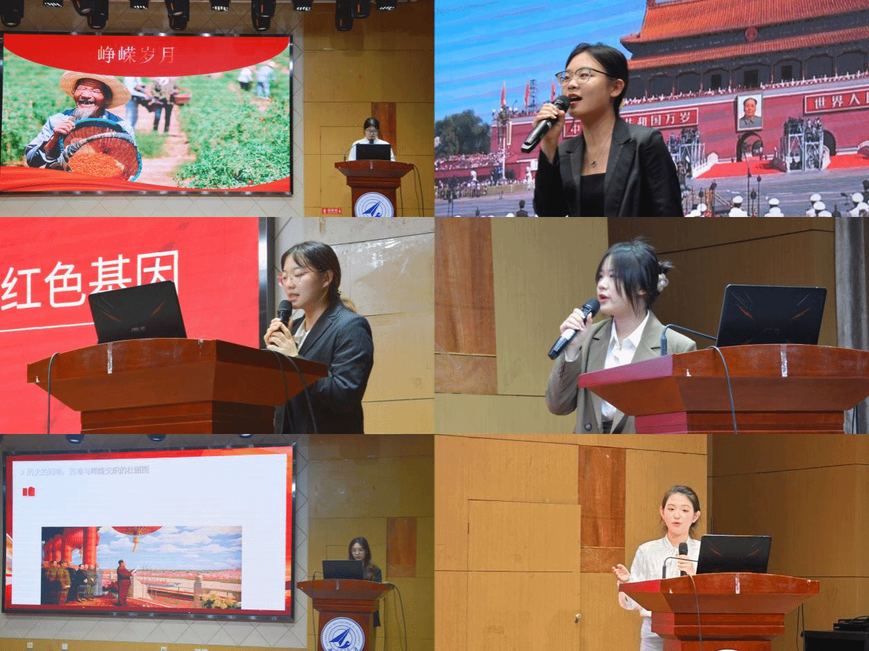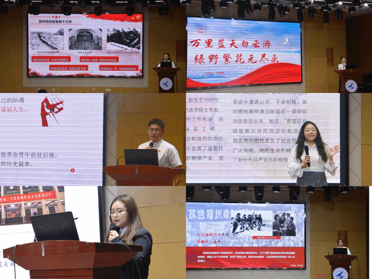 下半场,张少轩的《领航新时代,共筑强国梦》展望强国复兴的崭新篇章;杨睿琪《弦歌未止,薪火永传》以青年榜样激励各位同志永远保持积极进取的态度;张雅涵《三航精神铸脊梁》回顾了西工大与祖国共同成长的光辉之路;王雨晴结合自身所学专业,以《强国复兴中的法律人》表达对未来投身祖国法治事业建设的无限憧憬;郭景丽以《七十五载成就辉煌,新时代再攀新高》向在座同志们讲述时代宏伟蓝图;张涵一堂《让“创新花”结出“发展果”: 科技强国重任在肩》,阐述了西工大人“科技强国重任在肩”的使命担当。