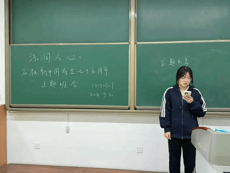 党的二十届三中全会审议通过的《中共中央关于进一步全面深化改革、推进中国式现代化的决定》在新的历史方位和战略语境中更加明确提出“弘扬社会主义法治精神”。为深入学习贯彻党的二十届三中全会精神,在新中国成立75周年之际,13052301班于9月30日举办了“庆祝中华人民共和国成立75周年,看法治征程中的青年担当”主题班会。