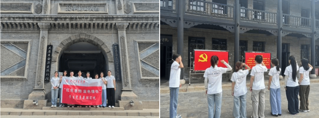 8月6日上午,实践队来到国民师范旧址——山西早期党团活动策源地。“这里是山西第一个团支部诞生地,也是太行山最早的马克思主义火种播撒处。”队员们认真聆听讲解员讲述高君宇、贺昌等革命先辈在此成立山西第一个团支部的故事,体悟“教育救国”的初心星火,深刻感受先辈于国难中坚守书桌的执着。旧址小广场上,全体党员举起右拳,重温入党誓词,砥砺前进初心。