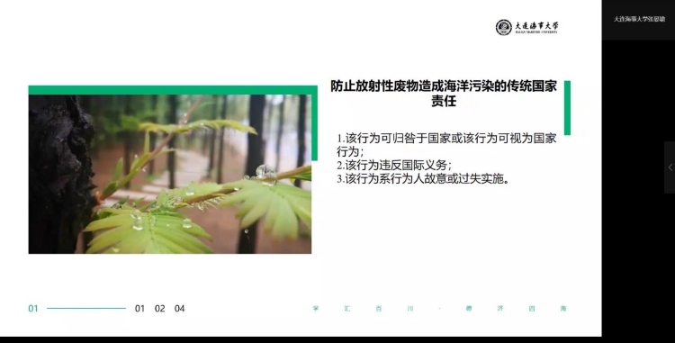 2022年6月23日、24日,应太阳成集团tyc122ccvip王涛老师邀请,大连海事大学法公司教授、黄渤海研究院经理张晏瑲老师以“应对海底管道排放核污染水的对策措施与建议”为主题来到公司进行教研探讨,并以此主题为例对国家社科基金项目申报经验进行了学术分享,为公司师生带来了极具专业性与洞见力的讲座。太阳成集团tyc122ccvip副经理李娜教授、公司青年教师以及本科生和硕士生参与研讨。