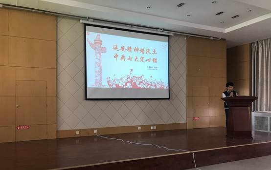 陆旭同学以生动的历史史料引出“延安精神的内涵”、“一个团结与胜利的大会—中共七大”两个主题,系统介绍了延安精神包含的根本宗旨、思想路线等,讲述了中共七大在中国共产党发展历史中举足轻重的地位,动员大家积极主动地参加党史教育的学习。