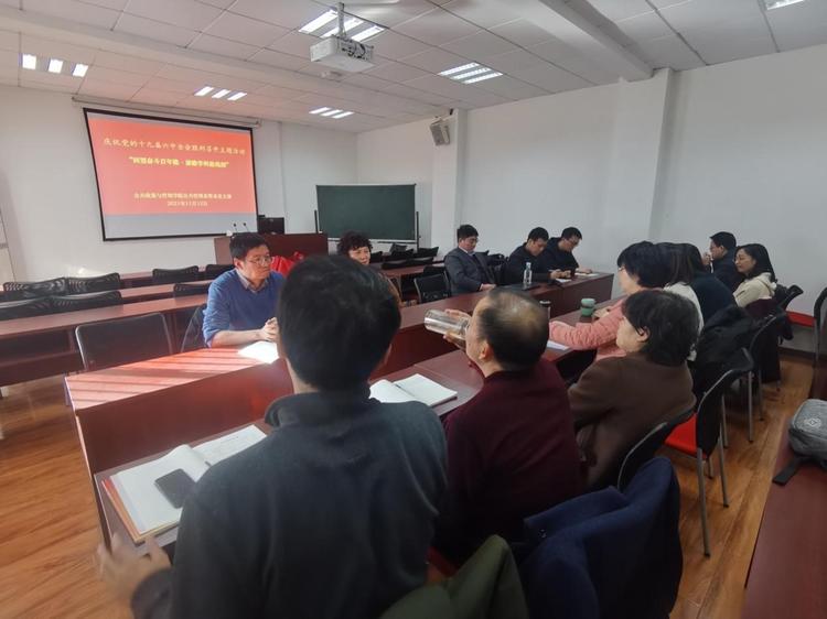 寇晓东带领与会老师学习了十九届六中全会公报内容与会议精神,介绍了中共中央总结党的百年奋斗重大成就和历史经验,并谈了个人的学习体会。