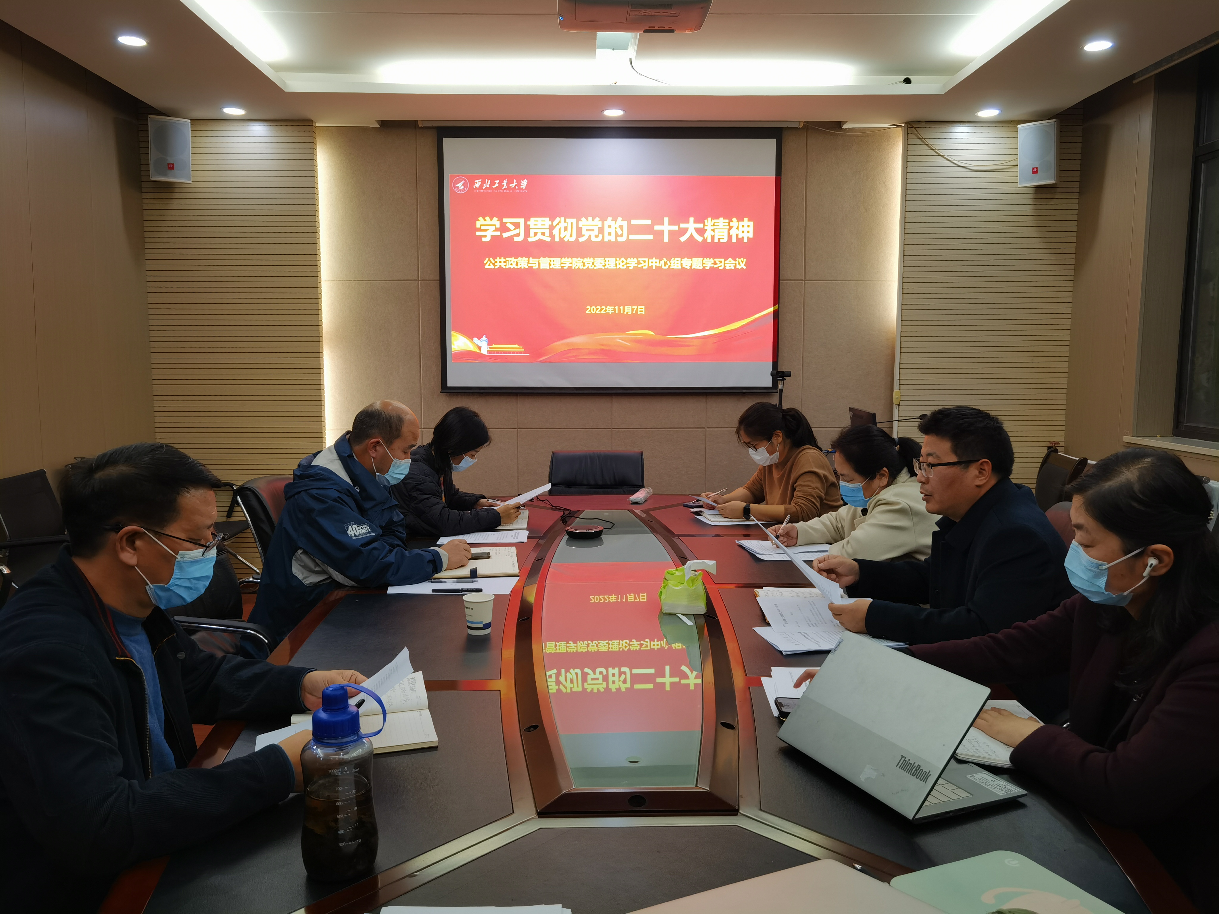 11月7日晚8:30,公共政策与管理公司党委理论学习中心组开展专题学习会议,继续深入学习贯彻党的二十大精神。会议由公司党委书记张清江主持,公司党委理论学习中心组成员参加。