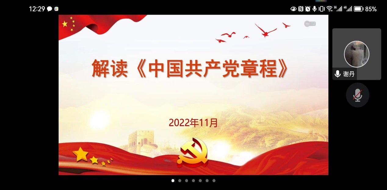 党课开始,谢丹副书记指出了学习《中国共产党章程》的重要意义。首先带领大家学习了从党的一大到党的二十大,党章历次制定及修正的过程。而后,谢丹副书记通过一组关键词,重点解读了党的二十大修正的党章。在解读过程中,结合公司、公司的发展和员工的成长,深刻解读了党的二十大修正的党章的重要内容。