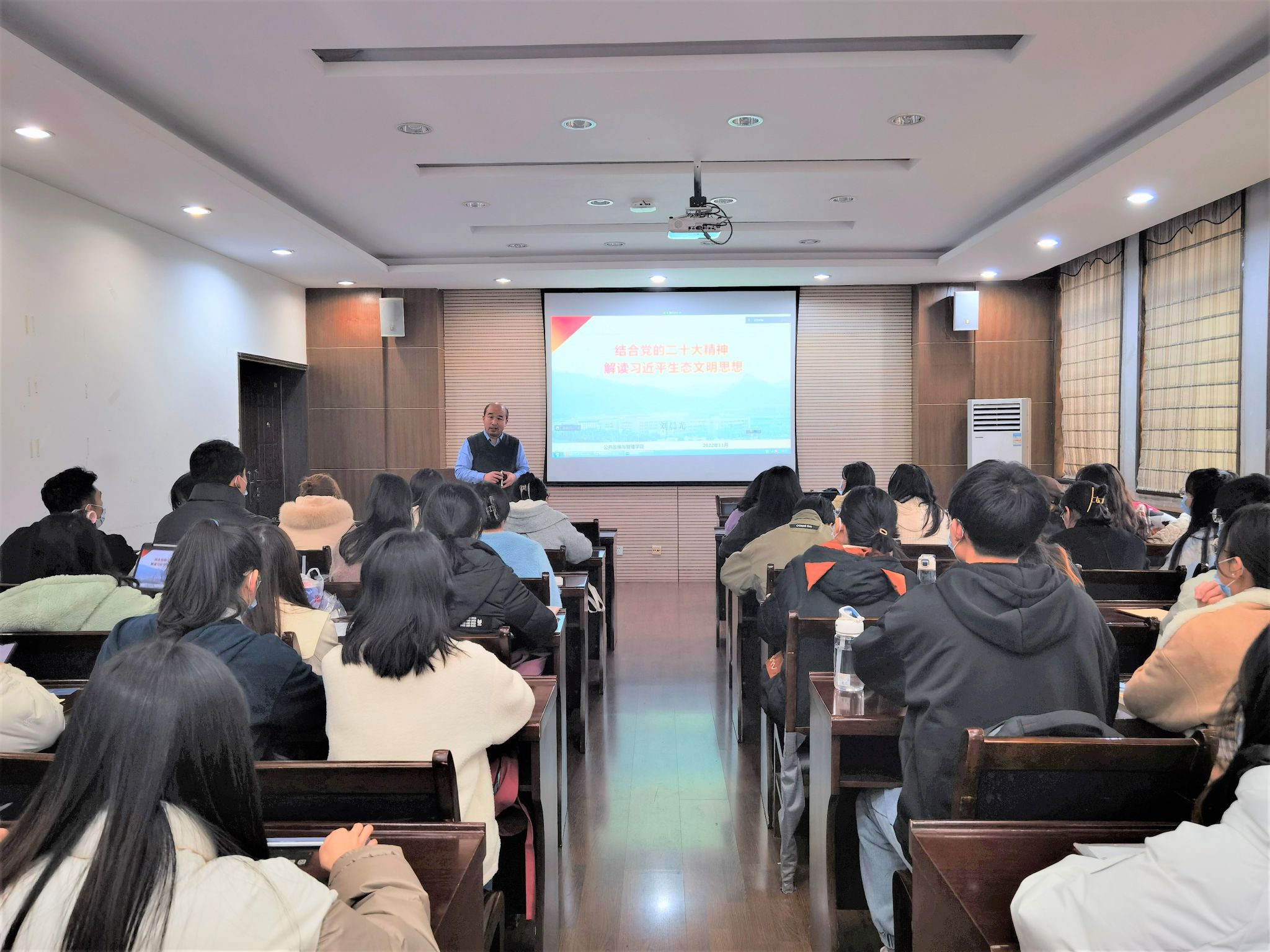2022年11月17日中午,公司刘晨光经理为入党积极分子和发展对象讲授专题党课《结合党的二十大精神 解读习近平生态文明思想》。本学期新确定的入党积极分子和发展对象全员参加。