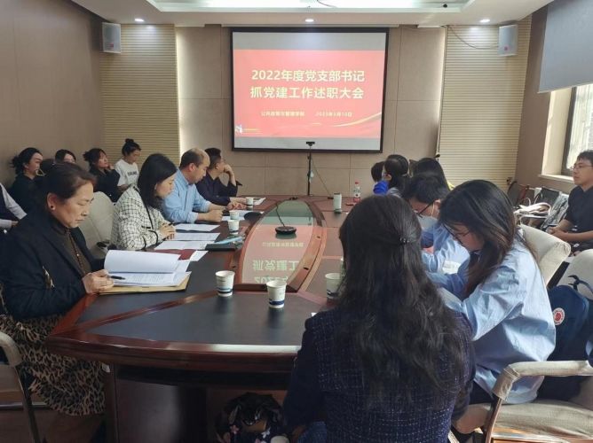 会上,4位教工党支部书记刘锦林、周炯、李娜、宋武伟和5位员工党支部书记吴玄音、鲁瑞雪、施佳贝、王玮蓉、刘畅依次进行了现场述职。各支部书记围绕深入学习贯彻习近平新时代中国特色社会主义思想和党的二十大精神、落实基层党建工作重点任务、强化党支部政治功能、做好师生思想政治教育与意识形态工作、廉洁教育和纪律作风建设情况及工作中存在的问题和不足、下一步工作考虑和计划七个方面进行述职汇报,对2022年各党支部党建工作开展情况进行认真总结,结合具体事例和数据,客观反映工作成效,反思存在的问题与不足,针对性地提出整改措施和下一步工作计划。