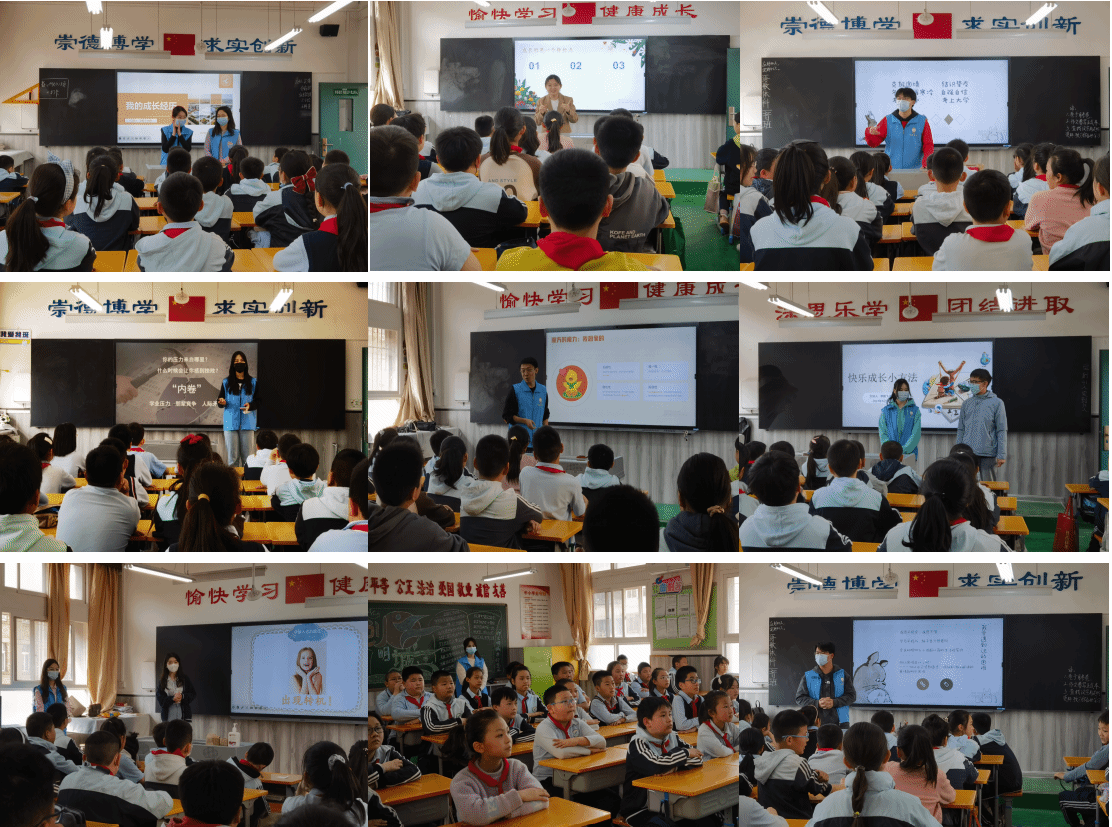 在五年级课堂中,司东昊为孩子们讲解了“困难的力量”,鼓励孩子们积极面对生活中的困难,心怀希望、迎难而上;闫正楠则从心理层面为孩子们送去希冀;黄佳祺鼓励孩子们学习“瓦伦达心态”,在生活中把心径扩大一毫米;张斓芯向孩子们指出好心态的重要性和自我调节的方法。