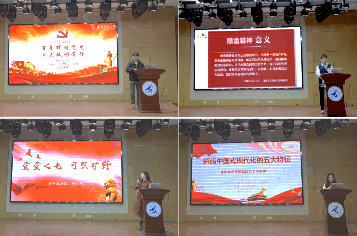 宣讲内容丰富,有照金精神的学习、优秀党员故事的分享、青年担当作为的感悟等,充分展现了朋辈的力量,展现了西工大青年的青春风采。