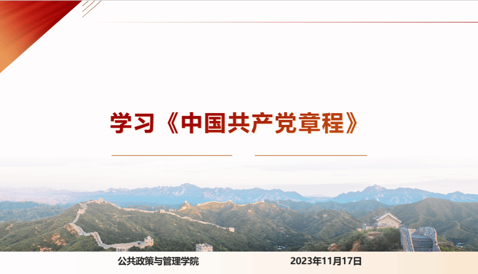 为进一步贯彻落实党的二十大精神,突出发展对象集中培训实效,11月17日晚,公共政策与管理公司党委书记张清江在长安校区为发展对象讲授专题党课,题为“学习《中国共产党章程》”。