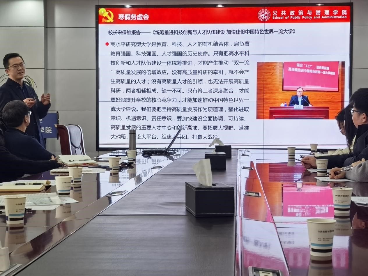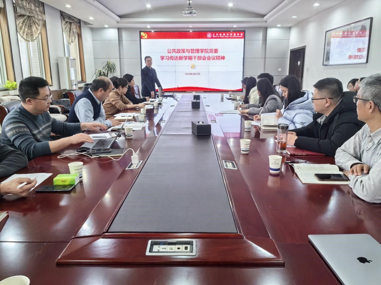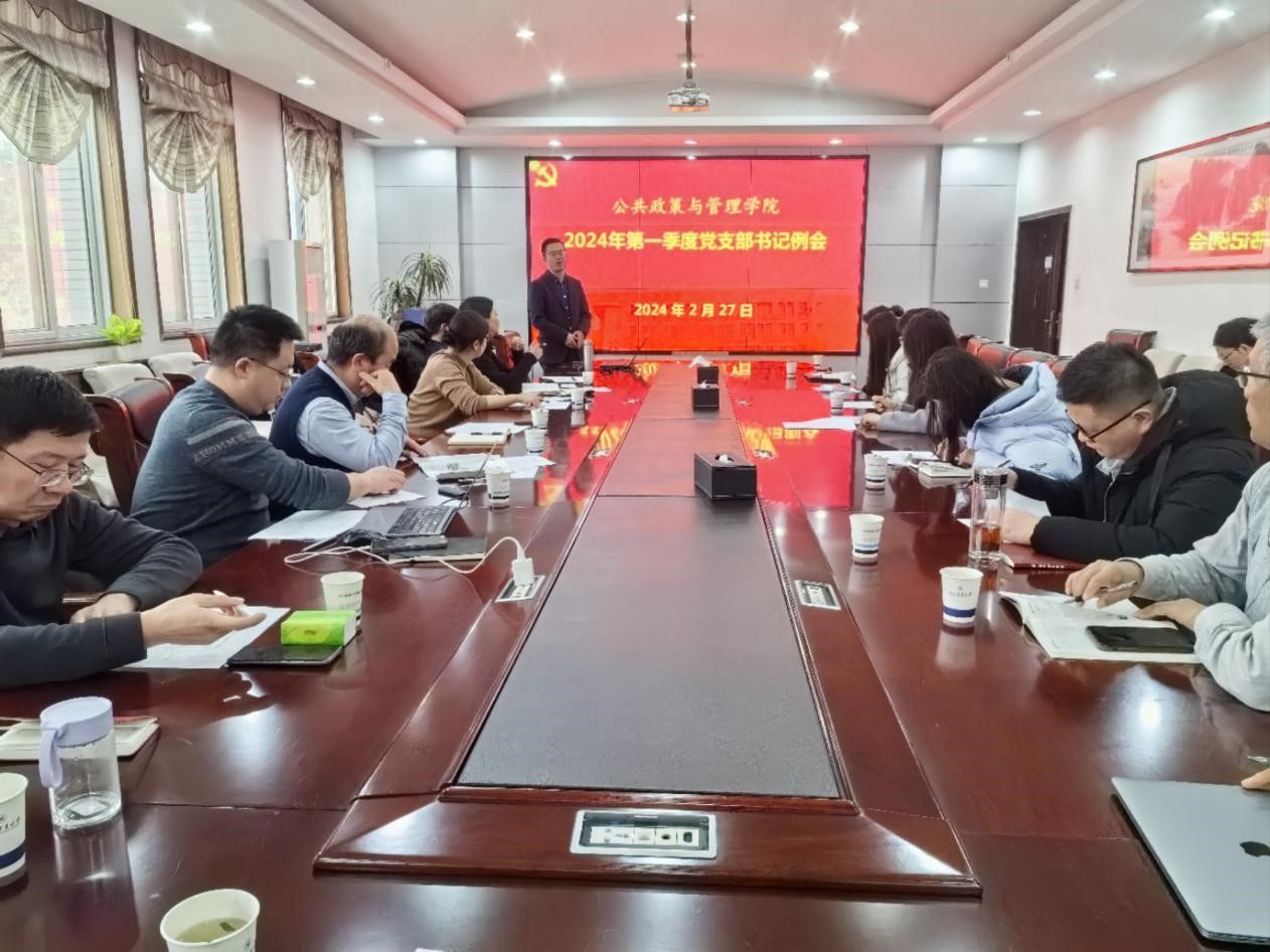 为学习传达公司2024年新学期干部会会议精神,统筹部署新学期重点工作安排,2024年2月27日下午,公共政策与管理公司党委在长安校区公司楼208会议室召开了2024年第一季度党支部书记例会。公司党委委员、公司各党支部书记、委员等参加会议,会议由公司党委书记管兴华主持。
