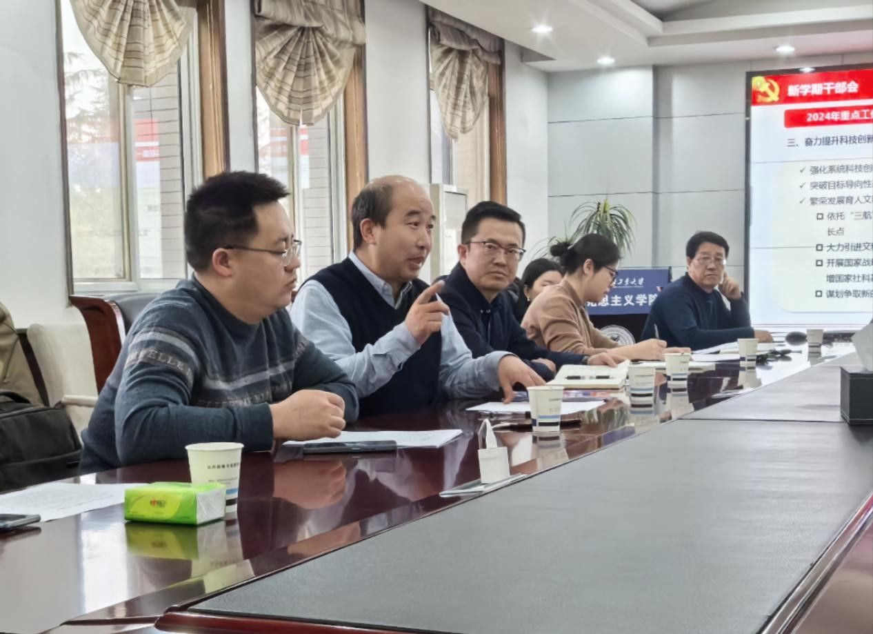 会上,管兴华首先传达了公司新学期干部会会议精神,带领全体参会人员共同学习了寒假务虚会与新学期干部会上公司党委书记李言荣的讲话和董事长宋保维的报告内容。结合公司会议精神,管兴华进一步对公司2024年重点工作进行详细部署,从持续强化思想引领、以“总师型”人才为引领的人才培养、科技创新、高水平人才队伍、国际合作、社会服务、育人环境、党建工作等八个方面进行了部署,他强调,公司党委2024年将紧紧围绕公司党委的部署要求,锚定“127”目标,将党旗插到教学科研第一线,推进公司高质量内涵式发展。