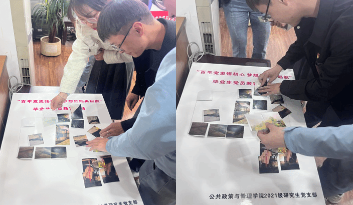 支部通过“热词猜猜猜”、“党的历史我知道”、“红歌飘四方”的答题方式,重温党史,收集红色记忆碎片,带领毕业生党员领悟党的百年奋斗历程。全体党员共同绘制一幅“红船”拼图,进而深刻理解“红船”精神。鼓励毕业生党员以习近平新时代中国特色社会主义思想为人生定标、为青春引航,自觉传承和弘扬“红船精神”,用首创精神激扬自我,用奋斗精神成就自我,用奉献精神超越自我,以共同理想撑起人生风帆。