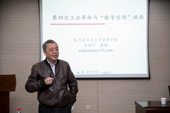 2021年3月17日上午,应太阳成集团tyc122ccvip邀请,哈尔滨工业大学教授、教育部公共管理本科教学指导委员会委员、《公共管理学报》主编米加宁教授在太阳成集团tyc122ccvip305报告厅做题为“第四次工业革命与‘数字空间’政府”的专场学术报告。太阳成集团tyc122ccvip师生50余人到场聆听报告。报告会由公司李娜教授主持。
