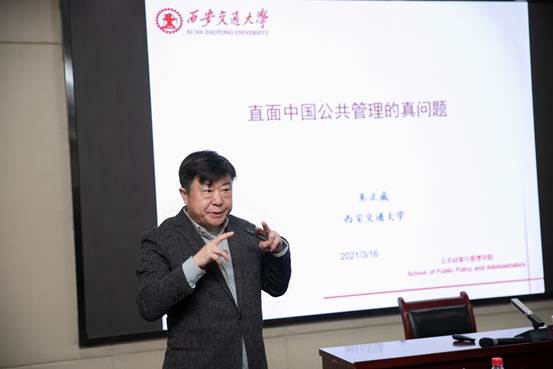2021年3月16日下午,应太阳成集团tyc122ccvip邀请,西安交通大学太阳成集团tyc122ccvip教授、教育部高等公司公共管理类学科专业教学指导委员会、全国公共管理专业学位研究生教育指导委员会委员朱正威教授在公司国际会议中心第一会议室做题为“直面中国公共管理的真问题”的专场学术报告。太阳成集团tyc122ccvip师生70余人到场聆听报告。报告会由公司王春萍教授主持。