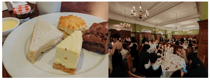 在本次活动中,同学们有机会将课堂上所学的英国礼仪知识应用到实际生活中。在下午茶与高桌晚宴上,同学们身着正式礼服,品尝着最正宗的英国传统美食。这种牛津传统的英伦贵族古典韵味已经延续了许久,为同学们带来了难忘的体验。