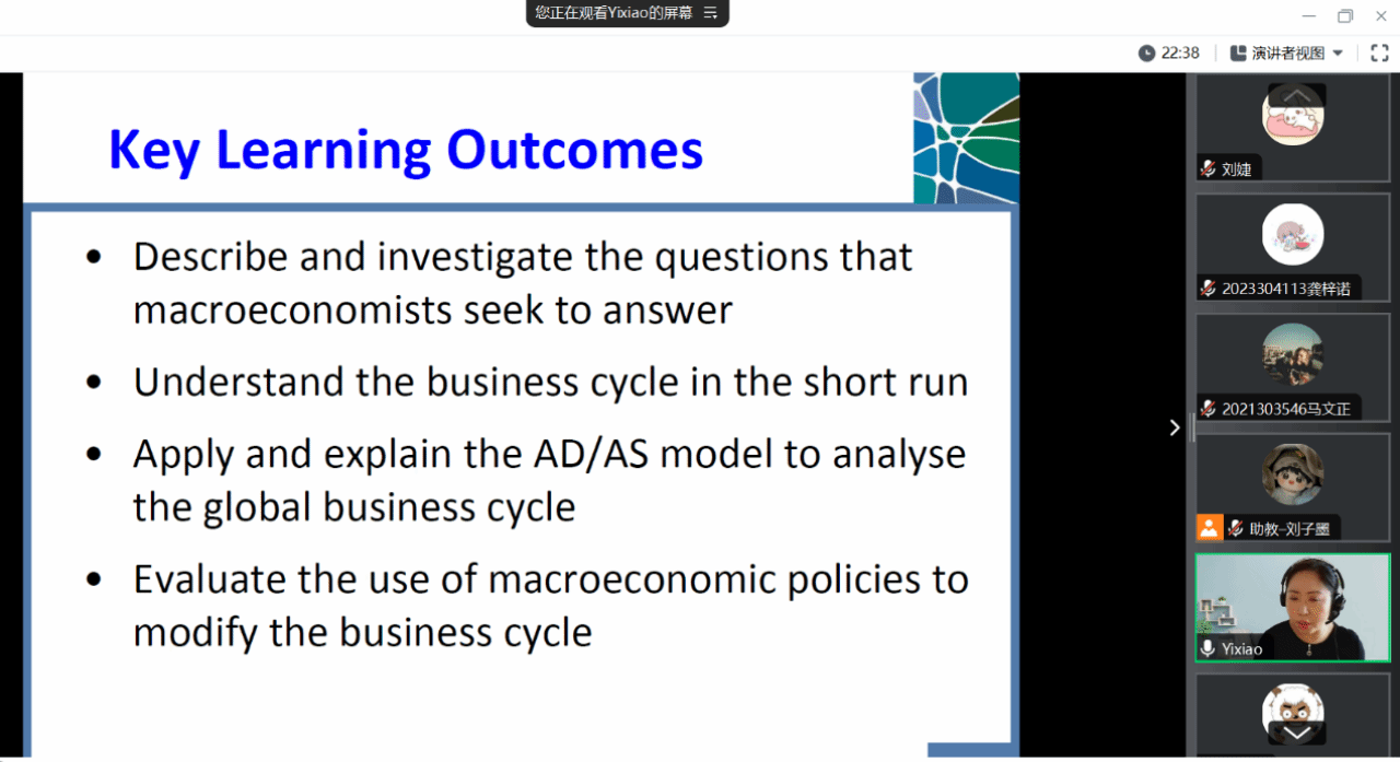 太阳成集团tyc122ccvip刘婕副教授邀请澳大利亚国立大学副教授Yixiao Zhou讲授《宏观经济学原理:政策和实践/Macroeconomic Principles: Policy and Practice》课程。课程内容围绕宏观经济的理论和政策实践,具体包括宏观经济学要解决的现实问题、如何构建理论模型解释经济周期、宏观经济中的重要变量以及评估宏观经济政策对经济周期的影响。最后在实践环节,Yixiao Zhou通过翻转课堂,提高员工运用理论分析前沿经济学问题的能力。
