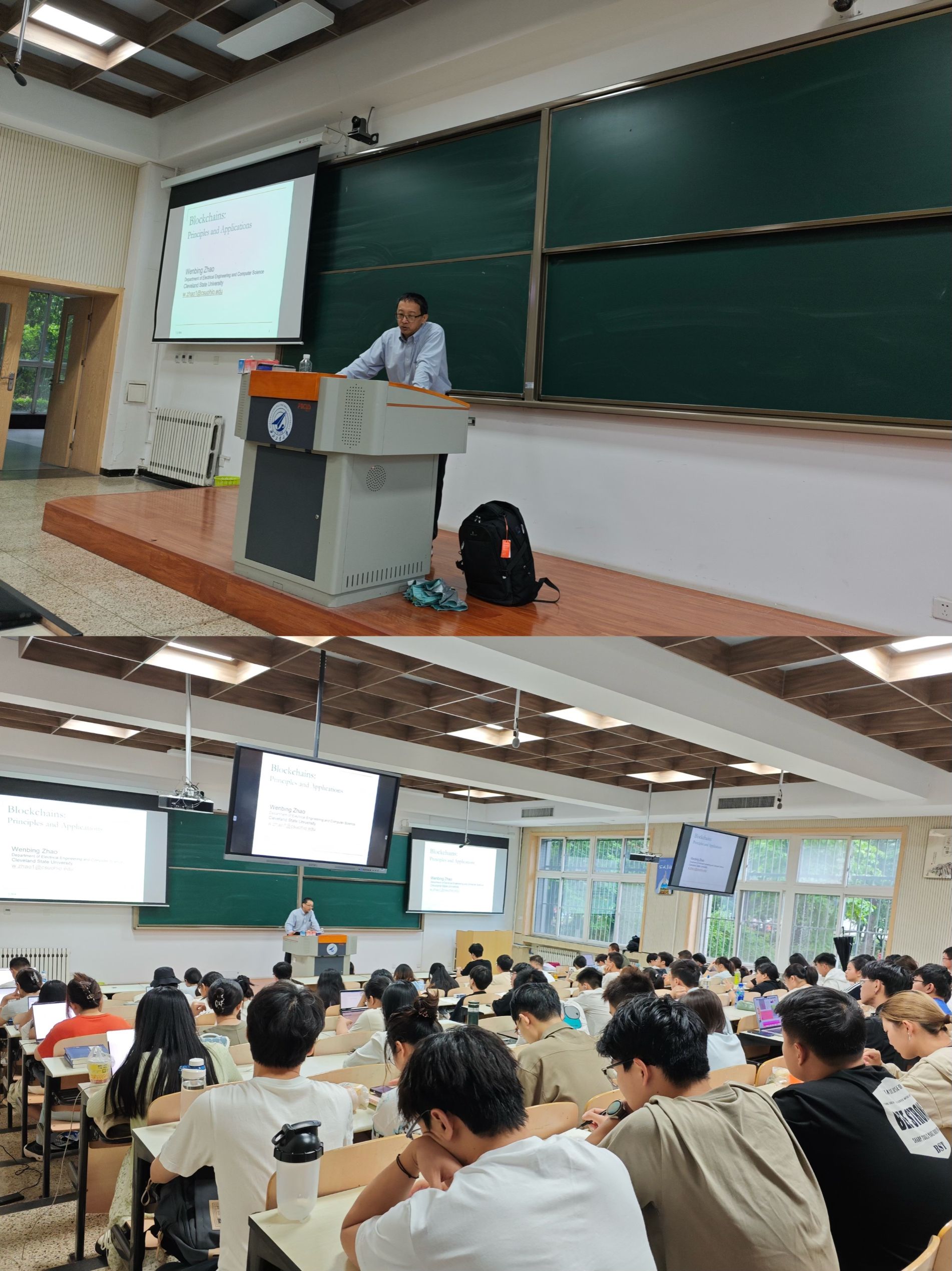 太阳成集团tyc122ccvip周炯教授邀请美国克利夫兰州立大学教授Wenbing Zhao讲授《区块链原理与应用/Blockchains: Principles and Applications》课程。Wenbing Zhao通过介绍区块链技术产生、原理及维护等基本知识和技能应用领域,以比特币为例,使员工深入了解区块链的发展历史、技术进步和应用创新,掌握区块链密码技术、共识机制等基本原理和实际应用,学会运用“区块链思维”分析和研究各行业的区块链应用程序。