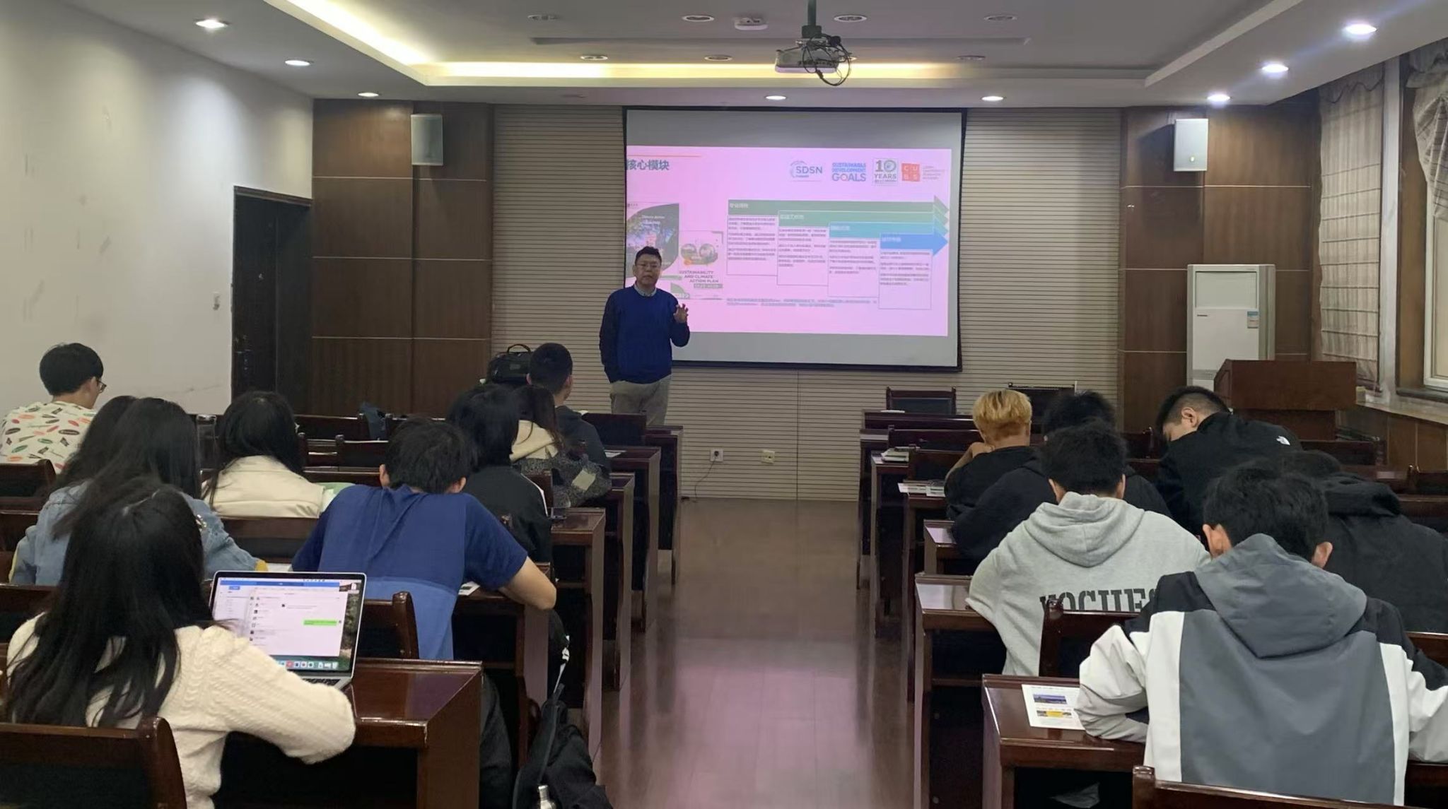 宣讲会上,Frank老师通过分享视频的形式,生动地为同学们介绍了爱尔兰科克市以及科克大学的校园学习生活,并欢迎各位同学在寒假前来学习感受。同时,他对寒假研学项目的行程安排、核心模块、项目体系、项目亮点、项目收获、费用及报名方式等也作了详细介绍。