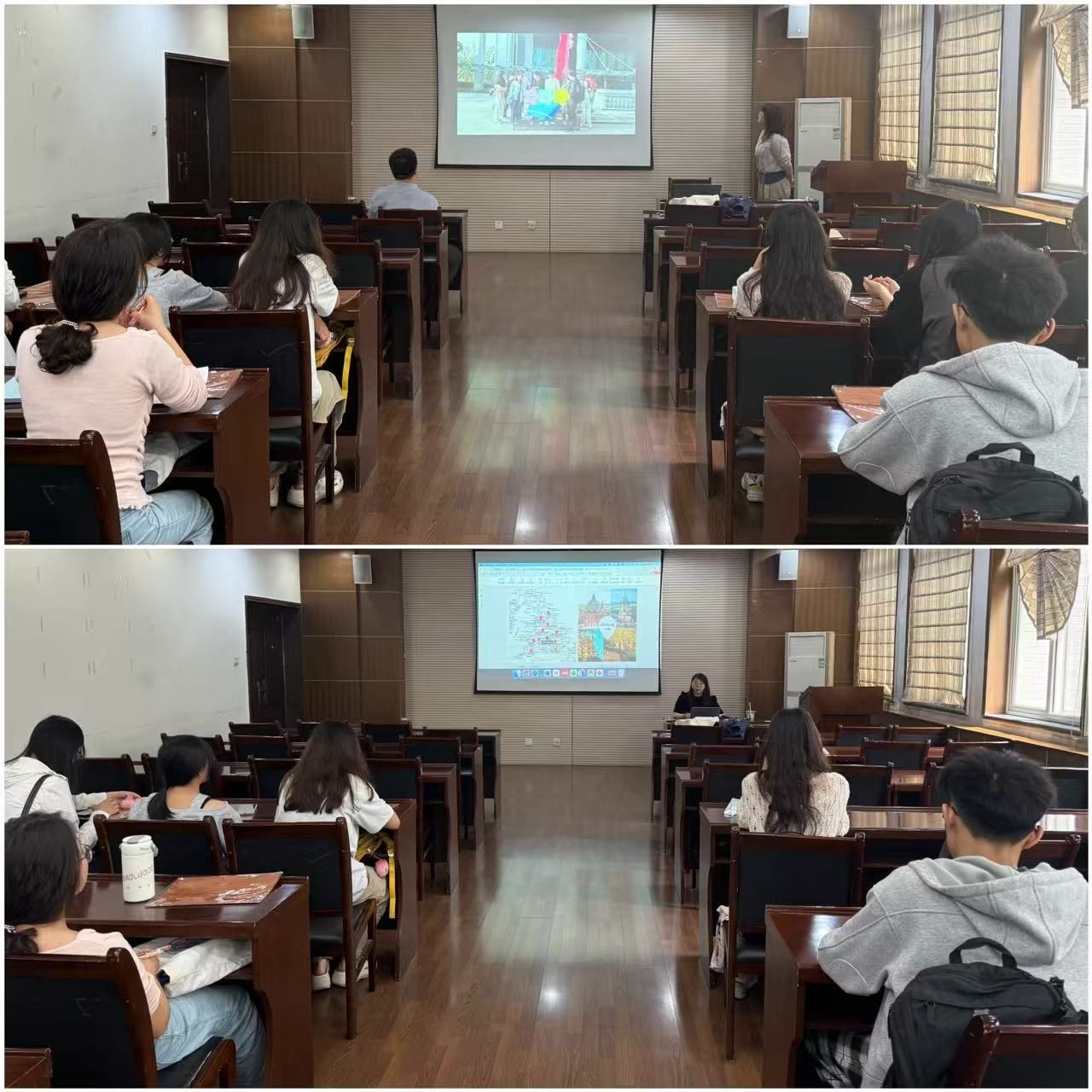 宣讲会上,冯学敏首先通过分享视频的形式,生动地为同学们介绍了在新加坡的学习生活,并欢迎各位同学在暑期前来学习感受。此外,她从项目内容及亮点、行程安排、报名方式等方面详细介绍了本次公司新加坡创新创业实训项目,并强调了项目将涵盖前沿学术讲座、企业参访及文化交流等多重环节,确保同学们获得全方位的体验。