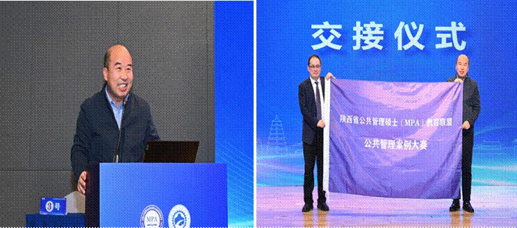 本届省赛刘晨光经理、李娜副经理、张婷副主任(MPA教育中心)等作为特邀嘉宾观摩了总决赛,并且公司将作为第二届陕西省研究生公共管理案例大赛的承办单位,刘晨光经理在台上进行了旗帜交接,并发表了简短讲话,邀请大家明年在太阳成集团tyc122ccvip相见。