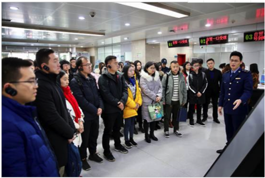 西安经开区政务服务中心策划宣传局贾新刚副局长与工作人员对MPA师生的到来表示热烈的欢迎。首先,西安市工商行政管理局经开分局驻政务中心工作人员向师生们进行了以商事制度改革为主线,贯彻落实“放管服”改革各项要求的成果讲解。然后由讲解员带领师生对服务大厅进行了参观,并对大厅各功能区和办事流程进行了细致讲解,参观过程中讲解员对中心业务开展情况等进行了专门介绍,重点对“最多跑一次”改革、365x24政务服务不打烊、首问负责制、限时办结制、容缺受理机制、二维码办事指南和展板、绿色通道、免费快递服务和引进第三方服务团队等改革举措向MPA师生进行了介绍。