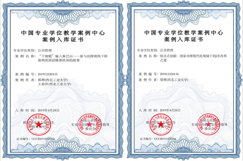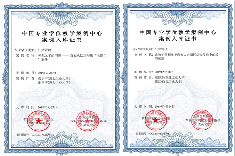 本次案例征集于2018年9月启动,经过多轮匿名评审和修改,由公司MPA中心庞小宁副教授主笔、研究生张珊珊参与撰写的《美名之下的阴霾——西安地铁三号线“电缆门”事件》,寇晓东副教授主笔、研究生汪红参与撰写的《政策扩散视角下西安大兴新区综合改造中的政府创新》,郑烨助理教授、王春萍教授撰写的《“干细胞”输入秦巴山——参与治理视角下陕南两贫困县精准扶贫的故事》,郑烨助理教授撰写的《组合式创新:国家治理现代化视域下的J市改革之道》4篇案例成功入选中国公共管理专业学位教学案例库。